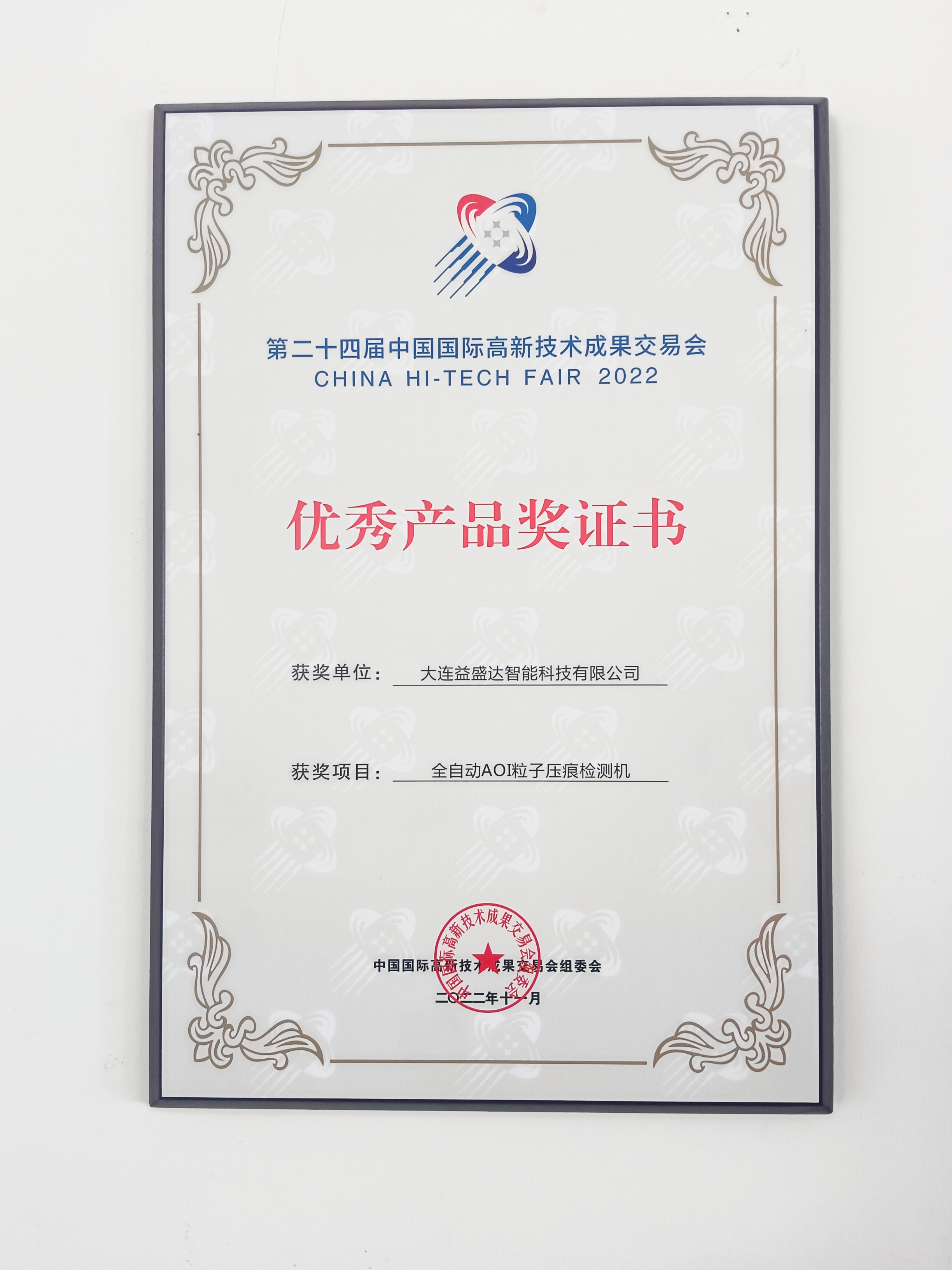 在剛剛落下帷幕的“第二十四屆中國國際高新技術成果交易會”(以下簡稱國際高交會),大連益盛達智能科技有限公司(以下簡稱“益盛達公司”)的全自動AOI粒子壓痕檢測機,憑借先進的檢測功能,榮獲“優(yōu) 秀 產 品 獎”。